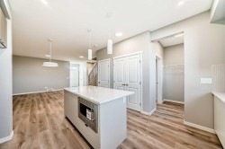 Welcome to 1054 Sawgrass Link NW, a beautifully crafted newly constructed home in Sawgrass Park by Hopewell Residential. Designed with everyday comfort and modern elegance in mind, this 3-bedroom, 2.5-bathroom home sits on a sunshine basement lot and includes a garage-ready concrete parking pad. From its bright, open layout to its stylish finishes and thoughtful upgrades, this home is the perfect blend of form and function. The main floor impresses with 9’ ceilings, Luxury Vinyl Plank flooring, and a well-appointed rear L-shaped kitchen featuring two-tone cabinetry, quartz countertops, a chimney-style hood fan, built-in microwave, upgraded backsplash, and an extra bank of drawers for enhanced storage. The spacious island is ideal for entertaining, while the painted spindle railing and knockdown ceilings add a touch of refinement. A convenient main floor pocket office offers the perfect spot for remote work or study, and the exterior gas line is ready for your future BBQ setup. Upstairs, a cozy loft space offers additional versatility — perfect as a reading nook, homework area, or play space. The primary suite features a tile-to-ceiling step-in shower with dual vanities, accompanied by two additional bedrooms and a full bathroom and laundry space to complete the upper level. The undeveloped basement provides endless opportunity for future expansion, complete with 9’ concrete walls, a wet bar rough-in, a bathroom rough-in, and a separate side entrance — allowing for flexible design and functionality as your needs evolve. Finished with durable and stylish Hardie Board siding, this home offers not only curb appeal but also long-lasting protection against the elements. Located in the welcoming community of Sawgrass Park, close to parks, pathways, and local amenities, this property is ready for immediate possession — move in and start your next chapter in style.