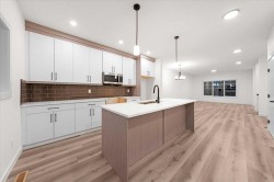 Welcome to 39 Baysprings Terrace – Brand New Townhomes by Luxury Custom Builders! Experience the perfect blend of modern comfort and timeless design in these thoughtfully crafted, brand-new townhomes. Built with quality and functionality in mind, these homes offer spacious layouts ideal for today’s lifestyle.Step inside to an open-concept main floor featuring stylish luxury vinyl plank flooring throughout. The heart of the home is the chef-inspired kitchen, showcasing a large quartz island, stainless steel appliances, and abundant cabinetry—perfect for both everyday living and entertaining. A convenient half-bath completes the main level. Upstairs, you’ll find three generously sized bedrooms, each with walk-in closets and custom built-ins. The primary suite is designed to impress with space for a king-size bed and a luxurious 5-piece ensuite that includes dual sinks, a deep soaker tub, and a separate walk-in shower. A dedicated laundry area on this level adds everyday convenience. The unfinished basement offers roughed-in plumbing and is ready for your future development. Outside, enjoy a professionally landscaped and fully fenced west-facing backyard with access to a double detached garage. This self-managed complex is beautifully maintained with low condo fees and a strong sense of community. Located near walking paths, the waterfront, and year-round recreation like paddle-boarding in summer and skating in winter. Families will love the proximity to parks, playgrounds, Nose Creek School (K–4), shopping, dining, and essential services. Whether you're seeking a family-friendly home or a smart investment, there’s a layout here to fit your lifestyle. Check out the virtual link.