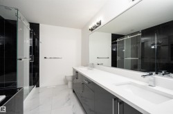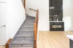 Step into a fully custom modern home designed for comfort, style, and functionality. Featuring 4 bedrooms, 3 full bathrooms, and a bright bonus room, this layout is perfect for growing families. The main floor includes a bedroom with a full bath, an impressive open-to-above living area, and a spice kitchen alongside a designer main kitchen with a quartz island, premium cabinetry, and a full tile backsplash. Enjoy vinyl flooring on the main for cozy look and carpet upstairs, and 9 ft ceilings on both the main and basement levels. Upstairs offers a spacious bonus room, a luxurious primary suite, two additional bedrooms, a full bath, and convenient laundry. With a side entrance and two basement windows, this home is also perfectly set up for a future legal suite. All appliances and blinds included.