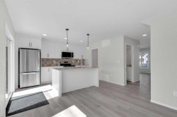 MOVE-IN READY! Discover this stunning 3-bedroom, 2.5-bathroom townhome in Aspen Lakes West, where contemporary design meets functional living. The open-concept main floor features a sleek kitchen with a center island, perfect for entertaining, flowing seamlessly into the dining and living areas. Upstairs, three spacious bedrooms await, including a luxurious primary suite with a walk-in closet and ensuite. With an unfinished basement for future customization and a prime location near parks, trails, and schools, this home is ideal for families or investors seeking long-term value in Blackfalds. PHOTOS ARE REPRESENTATIVE