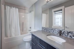 Discover the perfect blend of contemporary design and expert craftsmanship in this stunning three-storey executive home. Offering over 3,100 sqft of beautifully finished living space across four levels, this home is thoughtfully designed to meet the needs of modern family life while delivering timeless elegance. The main floor, with high ceilings and open-concept, is ideal for entertaining and family gatherings. A private front-facing office provides the perfect work-from-home space. The gourmet kitchen features stainless steel appliances, quartz countertops, and custom cabinetry that marries style with functionality. Upstairs, the second level hosts a luxurious primary retreat complete with a spa-inspired five-piece ensuite, including a soaker tub and walk-in shower. A second bedroom with its own ensuite and a convenient laundry room complete this floor.The third level boasts a spacious bonus room with vaulted ceilings and access to a private deck—perfect for entertaining or unwinding. A third bedroom and full bathroom make this level a fantastic option for guests or additional private living space.The fully finished basement includes a fourth bedroom, another full bathroom, and a generous living area—ideal for a media room, gym, or play space. Outside, enjoy the low-maintenance backyard with composite fencing —just step out and relax. The home also features an oversized single garage. Enjoy the convenience of being just a short walk from restaurants, fenced dog park, and scenic walking paths. Ideally located near downtown, Marda Loop, MRU and some of Calgary’s top-rated public and private schools, this home offers the perfect balance of elegance and urban energy.