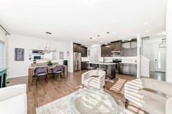 Excellent opportunity to own this beautiful home in the desirable community of Walden. Located on a quiet street and close to green spaces and all amenities. The welcoming, spacious foyer effortlessly introduces you to the well-designed open floor plan with beautiful hardwood floor and 9ft. ceiling. The stunning kitchen features a huge island, quartz countertops, stainless steel appliances, rich espresso cabinetry, subway tile backsplash, along with generous counter and storage space.The Living room has large windows allowing the natural light to fill your home. Cozy up next to the gas fireplace with a tile surround and a wooden mantel. The spacious Dining Room opens onto a large deck with a pergola, perfect for barbecues and family gatherings. A 2pc. bathroom, corner pantry and a spacious mudroom with access to the Double Attached garage complete the main level. As you move up to the upper level, you'll find a office nook and spacious Bonus Room with beautiful accent wall. The Laundry Room is conveniently located adjacent to the bonus room with great storage and front load washer dryer. Impressive large master bedroom is a true retreat featuring a large walk-in closet, 5 piece ensuite with large tub, separate shower and dual sinks. The TWO additional Bedrooms are generously sized with one boasting a walk-in closet as well. The basement is unfinished with good layout offering a huge potential for customization. Entire house and carpet were professionally cleaned and ready for you to move in! Don't miss out on this beautiful family home.