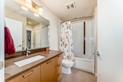 This well-maintained 1-bedroom apartment offers a bright, open, and functional layout designed for modern living. The gourmet kitchen features stainless steel appliances including a built-in oven and gas cooktop, quartz countertops, under-cabinet lighting, a sleek backsplash, and ample cabinetry with a large pantry. The living area boasts 9’ ceilings and floor-to-ceiling windows that fill the space with natural light and capture city views. The spacious queen-size bedroom includes a walk-through closet leading to the ensuite. Enjoy your private east-facing balcony with a BBQ gas hookup overlooking a quiet street. Building amenities include two fitness centers, a bike storage room, car wash bay, dog wash station, visitor parking, and a beautifully landscaped courtyard with seating areas. This unit comes complete with a titled underground parking stall, an assigned storage locker, in-suite laundry, and extra storage space. Located within walking distance to restaurants, cafés, shops, the downtown core, public transit, and river pathways—this home is perfect for professionals seeking a convenient urban lifestyle!