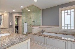 • Interior Features: Bar, Bookcases, Built-in Features, Central Vacuum, Chandelier, Closet Organizers, Crown Molding, Double Vanity, French Door, Granite Counters, High Ceilings, Jetted Tub, Kitchen Island, Natural Woodwork, No Smoking Home, Pantry, Separate Entrance, Sump Pump(s), Walk-In Closet(s), Wired for Data, Wired for Sound