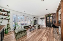 This loved family home has been owned by two generations and is being offered for sale for the first time in 49 years. It sits in a quiet cul-de-sac with a peaceful park right out front. This updated Mayland Heights bungalow is minutes from downtown and has nearly $175K in recent work. New luxury vinyl plank runs throughout the entire house. The main floor offers a dedicated dining area and a redesigned kitchen with stainless appliances, a movable island, a breakfast bar, and a mix of cabinetry and open shelving.There are three thoughtful main floor bedrooms, including a front room with a built-in Murphy bed that folds into a desk, and a second bedroom with a custom live-edge built-in desk. The main bath is fully renovated with heated floors and a laundry chute.The renovated lower level lives like its own suite. It features a large family room with bar, a half bath, laundry with built-in storage, and an oversized bedroom with the original gas stove converted to electric as a feature, a walk-in closet, and a private ensuite with custom tile. Plus extra under-stairs storage. Outside, the east-facing backyard includes a poured concrete patio, garden beds, greenhouse, shed, and fire pit, mature apple tree and raspberries. Big-ticket upgrades include new triple-pane windows (2025), new washer and dryer (2025), high-efficiency furnace (2024), newer hot water tank and softener (2020), updated electrical with hard-wired smoke alarms (2023–2024), new insulation and air sealing (2025), custom motorized blinds (2024), and participation in the Canada Greener Homes program with pre- and post-work ECO inspections. Move-in ready, energy-efficient, flexible layout, inner-city location.