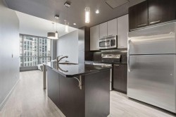 Elevate your lifestyle! Live on 22nd floor with breath-taking and timeless scenic views that will inspire and invigorate. This home has lovely natural light from every window in this stunning executive condo located at Keynote One, in the heart of Calgary's (Alberta) Beltline. Perfect for professionals who love being close to work, the new Library, Stampede Park, and the vibrant East Village with its entertainment, restaurants, and amenities. On the main floor of the complex you’ve got Sunterra Market, Starbucks, restaurants, and a craft beer store. This spacious two-bedroom, two-bathroom condo with large balcony (with a stunning view of Calgary), boasts 9-foot interior ceilings and floor-to-ceiling windows showcasing views of the Beltline, mountains, and downtown. The open-concept kitchen features granite countertops, and stainless steel appliances. The master bedroom offers a large walk-in closet, and full en-suite bathroom. You'll also enjoy in-suite laundry, and a titled parking spot with convenient underground parking. The building's amenities top-tier, including a fully equipped gym, and cardio room, an owner’s lounge with a kitchen, a rooftop terrace, and guest suites available for rent. This is the perfect place to call home.