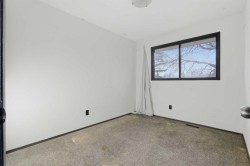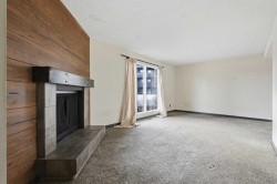 END UNIT | BACKING GREEN SPACE | 5 BEDROOMS | SPACIOUS 1280 SQ FT LAYOUT + FINISHED BASEMENT | VERY DESIRABLE COMPLEX | STEPS TO SCHOOLS, TRANSIT & AMENITIES | AMAZING VALUE FOR FAMILIES, INVESTORS & RENOVATORS | This bright end-unit townhome sits in a sought-after complex and offers an incredibly functional layout designed for families and anyone looking to personalize a home with their own updates. Oversized windows bring in natural light throughout the main level, while an inviting living room creates a warm gathering space anchored by an updated woodburning fireplace that adds both character and comfort. A bayed dining area supports easy flow for family meals and celebrations and the adjoining kitchen features generous cabinet storage, stainless steel appliances and a handy built-in desk for homework or work-from-home needs. A convenient powder room completes the main floor. Upstairs, 3 bedrooms ensure comfortable separation for family living, supported by a 4-piece bathroom with room to refresh and modernize. Even more flexibility awaits in the finished basement where a spacious rec room sets the stage for movie nights, gaming or a dedicated play area. 2 additional bedrooms and a 4-piece bathroom create valuable added living space for teens, guests or extended family. This level is ideal for buyers seeking versatility or investors exploring multi-generational accommodation options. Outdoor living is enhanced by direct access to a large green space, adding extra room for kids to play and for relaxed evening walks. A parking stall directly in front of the home adds everyday practicality. A truly unbeatable location elevates the value of this property, with Pineridge School, Saint Patrick School and Clarence Sansom School all within walking distance, along with transit, Village Square Leisure Centre, restaurants and shops. Quick access to Sunridge Mall and the C-Train strengthens convenience for commuting and errands. This is a fantastic opportunity for families, investors or handy homeowners to secure a spacious end-unit townhome in a well-managed community and update it to match their vision!