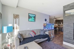 Enjoy those sunny downtown views from your big 10x7 west-facing balcony on the third floor! If you’ve been wanting to walk to work and stay close to everything, this is the spot. This well-built 1-bedroom suite is right by downtown, transit, and tons of shopping.The kitchen is sleek and modern with high-end stainless appliances, a gas stove, and a big quartz peninsula that’s perfect for cooking or hosting. There’s lots of room in the dining nook for a proper table too. The living room is bright and functional with corner windows and a cozy wall-mounted electric fireplace. You also get a spacious bedroom with great closet space and a full bathroom.Flooring has a mix of laminate hardwood, carpet, and tile for a nice mix of style and comfort. Plus, you get titled heated underground parking, secure storage, a fitness room, bike storage, a stylish lobby, and visitor parking—all part of “Bridgeland Hills.” And of course, you’re just minutes from downtown, trendy shops, restaurants, and everything Bridgeland has to offer.