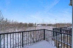 **MOVE IN READY - BACKING GREEN SPACE - DOUBLE PRIMARY SUITES** Discover this immaculate townhome perfectly situated in a quiet location, backing onto beautiful green space with panoramic views. Flooded with natural light, the home features large windows throughout and a bright, open-concept layout. The spacious kitchen offers sleek modern cabinetry, contemporary countertops, a stylish backsplash, updated stainless-steel and black appliances, plenty of storage, and workspace. Imagine enjoying your morning coffee on your private balcony overlooking the expansive green space, watching the wildlife. An inviting dining area flows into a large Great Room—ideal for both everyday living and entertaining. Upstairs, you’ll find two generous bedrooms, each with its own ensuite bath and walk-in closet, along with the convenience of upper-floor laundry.Additional highlights include a double attached tandem garage and LOW MONTHLY CONDO FEES. Plenty of monitored visitor parking is available. Close to schools, shopping, and recreation, with easy access to major transportation routes, this home delivers comfort, style, and an unbeatable location. City living with a country feel!