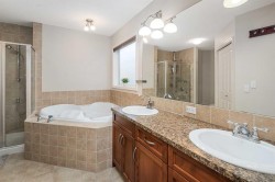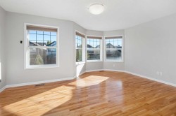 Welcome home to 38 Autumn Gardens! This spacious home has been lovingly maintained and has been freshly painted inside and out. The main floor features gleaming hardwood floors and generous sized rooms from the front flex room through to the family room with 3-sided fireplace and beautiful open to above ceilings. The kitchen is a cook's delight with plenty of cabinets, granite counters, stainless steel appliances, walk-through pantry and a central island with raised breakfast bar. The adjacent dining room shares the 3-sided fireplace and has access to the large multi tiered deck in your very private backyard. The convenient 2 piece bath and laundry/mud room complete this level. Upstairs has hardwood floors throughout and more space for your family to spread out; from the bonus room to the 3 good sized bedrooms, one of which is the primary bedroom with walk-in closet and a spa like ensuite with a jetted tub and separate shower. The basement is unfinished and awaits your design ideas to expand your living space. Your low maintenance yard features Turf grass in the front and exposed aggregate concrete patio in the back, along with your multi-tiered composite deck with glass railings. You can unwind in your outdoor oasis inspired retreat with a hot tub and pergola giving you a private setting to relax. Updates to this home include a newer furnace, tankless hot water heater (replaced March 1,2023), air conditioning evaporator coil (replaced July 4, 2024)and heated double attached garage, to name a few. Located on a quiet street within walking distance of schools, parks and pathways leading through the community and to the lake, plus an easy commute to South Calgary Health campus and great access to major throughfares. Don't miss out on this amazing family home!