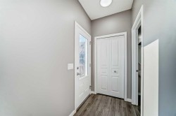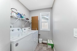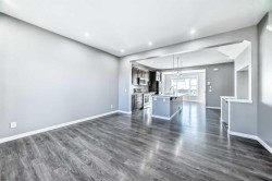 Welcome to this beautiful family home in the heart of Auburn Bay! Beautifully developed living space — plus an additional in the undeveloped basement ready for your personal touch — this freshly painted, open-concept home offers comfort, functionality, and style.At the front, a sunny 19.5-foot porch invites you to enjoy your morning coffee or unwind in the evening. Step inside through the decorative glass door with a transom window that fills the entryway with natural light while maintaining privacy. The spacious living room features a large window and low-maintenance laminate flooring that flows seamlessly through to the kitchen and dining area.The modern kitchen is equipped with stainless steel appliances, plenty of cabinetry, and a massive island perfect for meal prep or casual dining. Under-cabinet and track lighting brighten the workspace, while a pantry provides added storage. Just across from the kitchen is a convenient office or study area — perfect for helping the kids with homework or setting up your own home library. The adjacent dining area enjoys views of the backyard through a large window, and a two-piece powder room is thoughtfully located near the back door for convenience.Upstairs, the primary bedroom is a true retreat with a private five-piece ensuite featuring a soaker tub, stand-up shower, and double vanity, along with a spacious walk-in closet. Two additional bedrooms and an upper-level laundry room make this floor ideal for family living.The lower level, complete with a large egress window, offers the potential to add a fourth bedroom or create a custom-designed living space. Outside, the backyard is ready for entertaining with a freshly painted two-tier deck — perfect for summer barbecues and family gatherings. There’s also ample space for a future double garage accessible from the paved alley.With its family-friendly layout, abundant natural light, and room to grow, this freshly painted Auburn Bay home offers the perfect blend of comfort, functionality, and modern living.