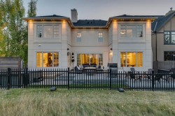 Welcome to 40 Mary Dover Drive SW, located in the highly desirable community of Currie Barracks. This custom built home by Mission Homes is situated on the most desirable street in all of Currie Barracks. Boasting over 4900 sqft of developed space, this home has everything a growing family needs. Impeccably maintained, this home feels and looks like a show home. The main floor offers soaring 10’ ceilings, beautiful hardwood floors, coffered ceiling details and wainscotting throughout. The main floor consists of an office space, dining room, living room with fireplace, kitchen with eating nook, mudroom, storage room, powder room and laundry. The kitchen offers marble counter-tops, Wolf & Miele appliances, a large island and hidden pantry. Upstairs you will find 3 bedrooms, 2 full en-suites, and a large family room. The two kids bedrooms have an extra large Jack&Jill bath setup with their own wash area with doors for privacy, it shares a large soaker tub and glass shower. The Primary Bedroom has been remodelled with a large reading area, and a fully renovated en-suite with heated floors, soaker tub, steam shower & large walk-in closet. The basement is fully finished with radiant in-floor heating, wet-bar, recreation/movie room, games room, gym, wine cellar, a 4th bedroom and a full bath with glass shower. The furnace room has been maintained yearly and also includes new dual hot water tanks, AC unit, soft water, & central vacuum. Backing on to a large green space, the exterior of the home has had extensive landscaping, including irrigation, a built-in fire pit, patio area and hot tub. This home has an extra large 3 car garage with heated floors and is fully finished including epoxy floors. FEATURES INCLUDE: 10’ CEILINGS ON MAIN, HARDWOOD FLOORS, MARBLE COUNTER-TOPS, MIELE & WOLF APPLIANCES, OFFICE SPACE, FIREPLACE, HEATED FLOORS, GYM, WET-BAR, WINE CELLAR, SONOS SOUND, IN-CELING SPEAKERS, EXTENSIVE LANDSCAPING, FIRE PIT, IRRIGATION, CENTRAL AIR, LARGE 3 CAR HEATED GARAGE.