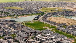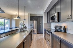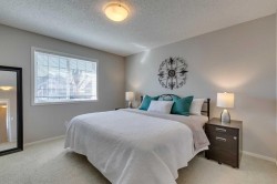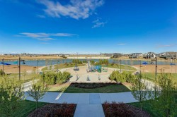 Open House - Sunday Dec 7, 3:00-5:00 - This well-designed semi-detached home in Mahogany blends functionality with comfort, starting with a long front hallway that offers generous closet space for shoes and jackets—ideal for busy households. As you move through the home, you're greeted by a stunning open-to-above area with soaring ceilings and natural light pouring in from windows above. The kitchen features a central island with seating and ample cabinetry. The adjoining dining and living areas are spacious and tied together seamlessly with warm hardwood floors. Directly connected to the dining area is the backyard deck, complete with a gas line hookup for your BBQ as well as landscaping for ease of use and beauty. Upstairs in the home, the primary bedroom offers a private retreat with large windows, a walk-in closet, and a full ensuite. A half wall overlooks the space below, allowing for even more light to filter through the home. Two additional bedrooms, a full bathroom, and a separate laundry room complete the upper level. The fully finished basement adds flexible living space with a full bathroom, large rec area, and custom storage options. The attached garage means protection for your vehicle and additional space for storage. The epoxy coated garage floor offers increased durability and easy cleaning. Additional highlights in this home include central air conditioning, a recently replaced water heater (2025), and convenient paved lane access; excellent benefits for an excellent home!Beyond the home itself, you'll love being just one block from Mahogany West Beach, where the lake, pathways, and park space offer year-round outdoor enjoyment. Quick, convenient access will make using the recreation amenities a breeze! With a true community feel and access to one of Calgary’s best lake communities, this home offers a lifestyle that’s hard to match.