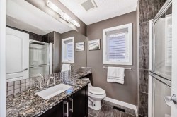 STUNNING HOME in Auburn Bay with FULLY DEVELOPED BASEMENT, TOTAL OF 4 BEDROOMS 4 BATHS. OVERSIZED GARAGE, dry-walled, insulated, WIRED 220V. HIGH-END FINISHINGS; HARDWOOD floors, CERAMIC TILE, LARGE CENTRAL ISLAND with GRANITE countertops, dark maple cabinets, tiled backsplash, crown mouldings & trims, window coverings and STAINLESS STEEL appliances. SPACIOUS living areas with functional, bright & open concept. OPEN STAIRCASE with SKYLIGHT & SPINDLE RAILINGS . Generous sized bedrooms, bathrooms with GRANITE countertops and under mount sinks. MASTER BEDROOM with WALK-IN CLOSET & 3 PC ENSUITE. 2ND BEDROOM can be converted back to a bedroom or you can enjoy the large dressing room with elegant cabinetry & finishings, GOOD SIZED 3RD BEDROOM and a FULL BATH completes the upper level. FINISHED BASEMENT is complete with HUGE REC ROOM , 4TH BEDROOM , BATHROOM & LAUNDRY ROOM. Great backyard with cedar deck, pergola with hot tub ready connections and stamped concrete patio. Nice front yard landscaping with artificial turf and amazing stone paved walk paths. Auburn Bay offers year-round activities including Lake access and playgrounds, steps away to the pond & walking paths, close to all amenities, hospital and schools ! CALL NOW to VIEW !!! MAKE THIS WONDERFUL FAMILY HOME YOUR OWN TODAY !