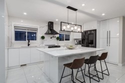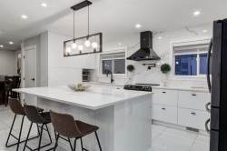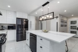 Must-see for owners and investors alike!Completely reimagined inside and out, this rare 5-bedroom, 4-bathroom (including 4 en-suites) bungalow with a separate entrance sits proudly on a massive 7,696 sq. ft. (70’ x 100’) lot — one of the largest in the area. The space, design, and versatility of this home set a new standard for comfortable, stylish, and profitable living.The main level (approx. 1,300 sq. ft.) showcases a stunning open-concept design highlighted by 24 x 24 designer tiles, custom millwork, and timeless black-and-white finishes and an amazing custom- built entertainment unit that becomes the focal point of the living area. The space is perfectly balanced - open yet defined, with enough room for a full dining area and abundant natural light streaming through large upgraded windows that mark the entire level feel airy and inviting. The chef-inspired kitchen features black stainless-steel smart appliances, stone-brand countertops and backsplash, and a grand center island, seamlessly connecting to the living and dining areas — ideal for gatherings and entertaining.Three bright bedrooms, including two with private en-suites, are paired with luxurious bathrooms featuring high-end fixtures, elegant tile work, and contemporary lighting. Every detail on this level reflects thoughtful planning and craftsmanship, blending functionality with style.The lower-level suite (illegal) with its own private entrance mirrors the same quality finishes and design. Offering over 1,1560 sq. ft. of living space, this suite includes 2 spacious bedrooms, 2 full bathrooms, a bright open living area, and a brand-new kitchen — perfect for extended family or generating excellent rental income. The owner has already begun the process toward legal suite conversion, including hood fan, range, large egress window, separate laundry, and all new electrical with 200-amp electrical service and brand new panel, A/C , brand new plumbing through out Outside, the transformation is just as stunning. Brand-new Hardie boards exterior is accented with rich cedar highlights that add warmth and character, upgraded exterior insulation for smaller utility bills , new windows, and R-36 fiberglass blown-in attic insulation. The enormous south-facing backyard — over 7,600 sq. ft. of outdoor space — offers endless possibilities: entertain on the exposed aggregate patio, relax in the hot tub, or simply enjoy the privacy and open sky. The new fencing, oversized double detached garage, and deep driveway with extra parking make this property both functional and impressive.Located minutes from South Centre Mall, Southland LRT, Superstore, Walmart, Canadian Tire, and top amenities, this home offers unmatched convenience. Every aspect has been updated and refined — inside and out — ensuring a turn-key experience for the next proud owner.This is more than a renovation; it’s a complete transformation — a home that truly delivers space, style, and value on a massive 7,696 sq. ft. lot.
