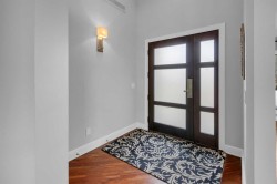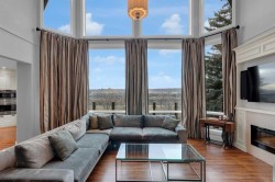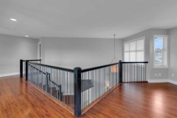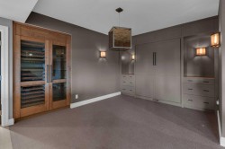 Welcome to this truly incredible custom-built home perfectly positioned on a quiet street in the prestigious community of Scenic Acres. Backing onto a ravine with breathtaking views of the mountains and COP, this home combines timeless elegance with modern luxury. Originally crafted in 1996 with a neo-classical design, the property underwent a major renovation by Empire Kitchen and Bath approximately 11 years ago, which included updates to the roof, windows, and exterior. The main floor showcases a fully loaded chef's kitchen with gorgeous countertops, top-of-the-line Miele built-in coffee machine, Sub-Zero fridge and drawers, Wolf oven and wolf steam oven, induction cooktop, and convection microwave. From the kitchen, step out onto the expansive full-width deck with BBQ gas line and enjoy the sweeping ravine views. The main living area is a showpiece, featuring a majestic fireplace, soaring ceilings, and Pella windows fitted with Hunter Douglas blinds. An elegant formal dining room and a primary bedroom with a luxurious ensuite including a steam shower complete this level. Upstairs, you'll find two spacious bedrooms, each with their own ensuites, heated floors, and walk-in closets. A cozy family or games room with a gas pellet stove adds warmth and charm while a bonus loft/home office or library with built-in shelving overlooking the living room. A separate wing features another primary bedroom with a heated ensuite and walk-in closet, providing privacy and comfort. The walk-out basement is an entertainer's dream. It features a rec room with a wet bar, complete with a sub-zero wine fridge, dishwasher, and walk-up access to garage, plus a gym area (with fridge included), pool table area (also included), and a Murphy bed for guests. The lower level also offers beautiful ravine views, a sport court with light switch, firepit with gas line, and underground sprinklers. Recent upgrades include two new furnaces in basement one in garage and one for the addition, and hot water tanks (September 2023) by Arpis, plus a ceiling furnace dedicated to the heated triple attached garage with aggregate driveway. The garage includes a Garage Works wall system and automated opener with controls. Smart home electronics are included from Home Concepts, along with two Kinetico water systems - one on the main floor and another in the basement with a chlorine filter and water softener. Throughout the home, gorgeous cherry hardwood floors, high open ceiling, and air conditioning provide an atmosphere of sophistication and comfort. Set on a quiet street right next to walking paths, this exceptional property offers easy access to Crowfoot Centre, LRT, and top-rated schools, as well as nearby parks and amenities. This is a rare opportunity to own a luxurious, fully upgraded home designed for both entertaining and family living in one of Northwest Calgary's most sought-after communities.