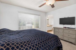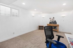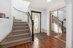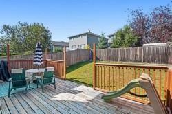 Step into a spacious entryway with a large front closet, leading into an open-concept layout with excellent sight lines throughout. Expansive windows fill the home with natural light, creating a bright and welcoming atmosphere. The kitchen features abundant cabinetry, a peninsula island with an eating bar and stainless steel appliances—including a fridge with ice and water dispenser. Enjoy views of the sunny west-facing backyard from the kitchen or dining area, complete with a 12x24 deck—perfect for entertaining, BBQs, or a kids’ play area. Convenient main floor laundry includes additional storage cabinets. Upstairs, two generously sized bedrooms share a full bathroom, while the spacious primary suite easily accommodates a king-sized bed and dressers. The primary suite also offers a walk-in closet and a full ensuite with a corner soaker tub and separate shower. The finished basement boasts a large recreation/projector TV room, a fourth bedroom, and a newer 3pce bathroom with walk in shower. Additional highlights include excellent storage, brand new carpet and paint. A full-width front driveway, and a double attached heated garage. This air-conditioned home is waiting for the new owners and perfect for families! close to Schools, Shopping and Transit