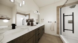 Welcome to the FIRST of EIGHT new half-duplex units to be built in the wonderful new community of Malloy Landing in the town of Coaldale! This terrific Edderton model is one of the most popular two storey layouts built by Stranville Living Master Builder and for good reason. This thoughtful main floor design incorporates a large welcoming living room and an ample dining room separated by Stranville Living's beautifully appointed kitchen that includes cabinetry by Adora Cabinets, a fully tiled backsplash, and quartz countertops for both the base cabinets and island with extended eating bar. On the upper level, you'll find all three bedrooms, both a primary ensuite and main bathroom, and laundry room set up for a stacking unit beside several shelves for storage. These terrific new duplexes are now under construction and will be ready for occupancy in the spring of 2026. Malloy Landing is the future of residential living in Coaldale and the Shift Rec Center and new high school are just the beginning of many compliments coming to this amazing new development! There's nothing like NEW! Photos are renderings but are a reasonable depiction of actual finishes selected by the builder's design team. Two exterior options and two interior options are available. Cobblestone exterior and interior package "A" shown here.
