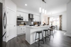 Your new home awaits in one of Cochrane’s most sought-after communities, Heartland! With its tree-lined streets, mountain views, parks, pathways, and naturalized amenities, this neighborhood truly has it all. Step inside the Otis-24, offering over 2,000 sq. ft. of thoughtfully designed living space. This stunning open-to-below model with elegant railing is built with your growing family in mind. The home features 3 bedrooms, 2.5 bathrooms, and a spacious primary suite complete with an expansive walk-in closet and a luxurious 5-piece ensuite featuring a double vanity, soaker tub, and separate shower. The main floor offers bright, open living areas with 9-foot ceilings, quartz countertops throughout, a den/office space and an electric fireplace that adds warmth and style. The home also includes a separate rear entrance and a back deck with aluminum railings, perfect for outdoor relaxation or entertaining. **PLEASE NOTE** PICTURES ARE OF SHOW HOME; ACTUAL HOME, PLANS, FIXTURES, AND FINISHES MAY VARY AND ARE SUBJECT TO AVAILABILITY/CHANGES WITHOUT NOTICE** MOVE IN BEFORE SPRING!