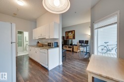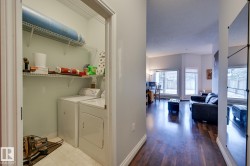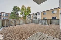 Welcome to this beautifully designed South Edmonton condo offering both comfort and convenience. The unit features 10 foot ceilings, two spacious bedrooms, two full four piece bathrooms, and in suite laundry with storage. The open concept design highlights bright kitchen cabinetry and a corner gas fireplace that creates a warm and inviting atmosphere. A standout feature of this home is the large private yard measuring 3.5 meters by 7.2 meters, complete with a patio, which is an exceptional find in condo living. The home also includes a separate titled underground parking stall for added convenience. Ideally located near schools, shopping, and public transportation, and only ten minutes to the University of Alberta, this well maintained complex in a prime location makes this home a must see. Pets are allowed but they must be registered and approved by the condo board.