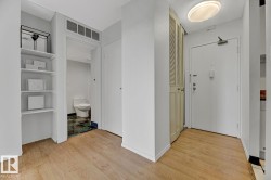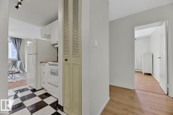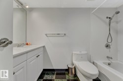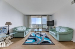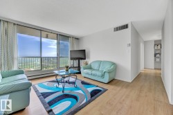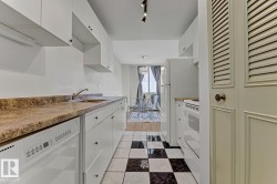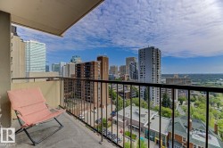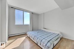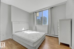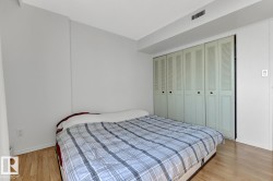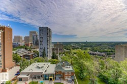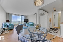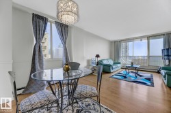 STUNNING 11TH FLOOR CORNER UNIT WITH BREATHTAKING VIEWS! Discover urban living at its finest in this exceptional 2-bedroom, 1-bathroom corner condo at Hillside Estates, where spectacular city skyline and river valley vistas greet you daily from the elevated 11th floor. This prime downtown location places you steps from Rogers Place and the Ice District entertainment hub, with trendy 104th Street dining and shopping at your doorstep, while offering easy access to the downtown business district and LRT transit. The unobstructed panoramic views from this coveted corner unit create the perfect backdrop for entertaining or enjoying quiet morning coffee moments. With secure underground parking included, you'll enjoy hassle-free condo living with building amenities and direct river valley trail access. The thoughtful 2-bedroom layout provides flexibility for home office space, guest accommodation, or roommate potential, making this ideal for professionals, investors, or anyone seeking the downtown lifestyle.