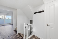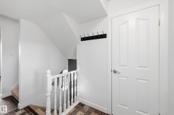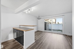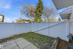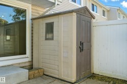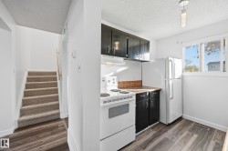Gorgeous Townhome with Elegant Living Spaces. This beautifully maintained townhome offers 990 sqft of elegant living with 3 beds and 1.5 baths. Featuring stunning curb appeal with a modern vinyl exterior, this home welcomes you with an inviting front entry leading into a spacious and bright living area. The chef’s kitchen impresses from every angle, showcasing tasteful finishes, painted cabinetry, tile flooring, and a functional island bar. Upstairs, you’ll find three generous bedrooms and a full bathroom designed for comfort and practicality. The fully finished basement expands your living space perfect for entertaining or relaxing and includes a large family room and a dedicated laundry area. Step outside to your fully fenced private backyard, with a cement pad ideal for a patio set or BBQ area, plus a storage shed for added convenience. Parking is a breeze with your stall right in front of the unit, along with plenty of visitor parking nearby. Located in a prime area close to schools and parks.