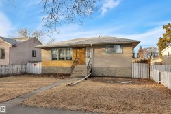 Attention first time buyers, investors and landlords. Welcome to this beautifully cared-for 3+1 bedroom bungalow on a massive 50' x 150' lot in Eastwood—where character, updates, and convenience all come together. Inside, you're greeted by a bright, open living room. The spacious eat-in kitchen provides plenty of room for family meals, while three comfortable bedrooms complete the main level. The basement now features a fully updated 3-piece bathroom, a large rec room, a fourth bedroom. A separated back entrance creates exciting opportunities for development. To top it off, the home is equipped with new central A/C Outside, the massive 150' deep lot offers endless possibilities: garden, shop, expansion, or future redevelopment. An oversized double garage adds even more storage and utility. With a newer roof, upgraded mechanicals, and walkable access to schools, transit, shopping, and the Yellowhead, this property offers both peace of mind and outstanding potential.