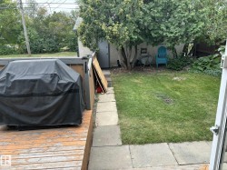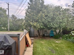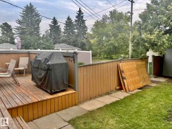 This lovely 1025 sq ft bungalow sits on a lovely tree-lined street in the mature & highly sought after neighbourhood of McQueen. The main floor offers 2 large bedrooms, 4 piece bath, Large L-shaped Living Room / Dining Room & a Den/Hobby room just off the spacious Kitchen. You'll also enjoy the original character of coved ceilings & Hardwood floors. Basement has separate entrance ready for Nanny suite with 2 roughed-in bedrooms (that will be ready by October 16th), rec room, and kitchen. Utility/laundry plus lots of storage space. Outside is a Huge Deck & Oversized Single Car Garage. Plus Parking for RV & 3 other parking vehicles. Located just 2 Blocks from a Great Playground & a Thriving Community Centre with Ice Rink, Tennis & Volleyball court. Close to transportation, schools, shopping (Westmount Mall), Downtown.