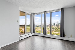 EXCELLENT END UNIT W/PANORAMIC VIEW OF downtown, lush river valley & North Saskatchewan river on the 18TH FLOOR of popular highrise building. Two bedrooms with 4 piece ensuite in each. Two secured parking stalls side by side. Great amenities with large gym/fitness room, table tennis, squash, tennis & basket ball courts, party room. Close to all amenities such as Kinsmen Sport Complex, U of A & downtown, Whyte Avenue, transportation, parks & trails.