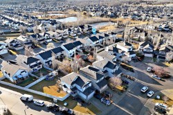 Welcome to this immaculate 5-bedroom family home in The Hamptons, close to schools (Walking distance to k-9 schools), shopping, and all amenities. The main floor greets you with a spacious front entry with plenty of storage, leading to a formal dining area and a well-designed kitchen. It features beautiful two-toned white and grey cabinetry, quartz countertops, corner pantry, and a functional island overlooking the inviting living room, highlighted by a chic herringbone marble-tile fireplace. Sliding doors open to the beautiful deck and backyard. A handy 2-pc bath completes the main level. Upstairs offers an expansive bonus room filled with natural light, a laundry room, and three bedrooms, including a lovely primary retreat with a walk-in closet and a spa-like 5-pc ensuite with double sinks, a soaker tub, and a separate shower. The finished basement adds a family room, two additional bedrooms, and a modern full bath with heated tile flooring. Situated across from a scenic pond, walking trails, and parks.