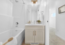 *** UNDER CONSTRUCTION *** Welcome home to this brand new row house unit the “Wren” Built by StreetSide Developments and is located in one of West Edmonton's newest premier communities of Rivers Edge. This home comes with front yard landscaping and a single over sized rear detached parking pad. This opportunity is perfect for a young family or young couple. Your main floor is complete with Vinyl Plank flooring throughout the great room and the kitchen. Highlighted in your new kitchen are upgraded cabinet and a tile back splash. The upper level has 2 bedrooms and 1 full bathroom. This home also comes with a unfinished basement perfect for a future development. ***Home is under construction and the photos are of the show home colors and finishing's may vary, will be complete by summer of 2026 ***