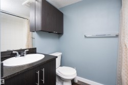 Stylish 2 Bedroom + Den Condo in Creekwood Landing II with Park & Pond Views! Welcome to Chappelle, a vibrant Southwest Edmonton community. This bright and spacious unit features newer vinyl plank flooring, large windows, and a functional open layout. The modern kitchen offers granite countertops, stainless steel appliances, and an island with seating. The versatile den is ideal for a home office or extra storage. Enjoy your south-facing covered balcony with beautiful park and pond views—perfect for relaxing. The primary bedroom includes a walk-through closet and 3-piece ensuite. A second bedroom, full 4-piece bath, and in-suite laundry complete the space. Includes a Titled Heated Underground Parking Stall. Condo fees cover heat and water. A peaceful location and a fantastic community—welcome home!