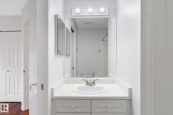 Located in the hidden gem of west EdmontonTerra Losa! This home is steps from walking trails, a park, shopping, & lake. This fully finished home has a white kitchen with brand new quartz counter tops, sink, new stainless steel fridge, luxury vinyl plank flooring. Eating area leads to patio doors & deck w/ privacy wall where you can enjoy the seclusion of the treed backyard. Laminate floors gleam in the living room with the sunny south facing window & there is a gas fireplace to keep you warm. Updated 2 piece powder room and updated light fixtures rounds out this level. Upstairs there are 3 bedrooms including a master bedroom with full ensuite & vinyl plank flooring. The main bathroom upstairs also features vinyl plank flooring and quartz counters. The basement has family room with large window and the laundry room. Furnace and hot water tank have both been replaced in the last few years. Single garage is an added bonus. Enjoy a quiet walkable area that blends natural beauty w/ urban convenience.