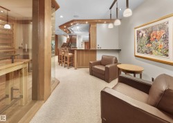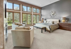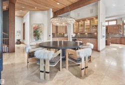 Windermere Ridge Estates, an extraordinary custom Cove Properties home nestled along the edge of the river valley with a 23,875sqftlot. This grand residence blends timeless architecture with resort-style amenities, breathtaking indoor-outdoor living & meticulous landscaping sets the tone for refined river valley living. Inside, the home is a showcase of artisan craftsmanship & luxury finishes -11,649sqft of total finished living space – 4 beds plus 2 beds, 6 baths, Gourmet Chef’s Kitchen, Elegant Dining Room, Primary Suite with 2 ensuites – Dressing room & private office, Gym with Spa area, Yoga Studio, wine room, Theatre Room – 2 Triple Attached Garages & so much more. Stepping inside the elegance & quality is felt from the heated limestone floors to the living area boasting craftsmanship like no other with exposed beams, ambient lighting & a commanding metal fireplace. Whether hosting lavish dinner parties or savoring quiet mornings, this property is more than a home, it's a family estate.