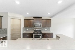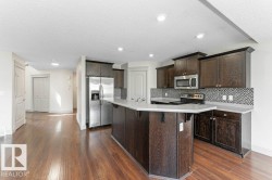 Welcome to thoughtfully designed well maintained home in the desirable community of Walker. Step inside to an open-concept main floor featuring double height entrance area and bright living area, kitchen with a large island, pantry, Dining area and prayer room. The upper floor has spacious Bonus Room and 3 bedrooms. The Master Bedroom is large and has walk in closet and ensuite. The other two bedrooms are good size and also a full washroom on the upper floor. The house is freshly painted and has Air-condition and comes with brand new carpet. As per the original floor plan, the laundry room was located on the main floor. This space has since been converted into a prayer room but can easily be reverted back to a functional laundry room if desired. The backyard is fully landscaped and has very large deck with glass railing. It is conveniently located near to Schools, Public Transportation, Shopping Centre, playground and with easy access to Ellerslie Road and Anthony Henday drive.