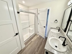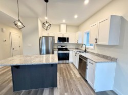 This brand new end unit triplex, built in 2025, features a large lot, modern 2 Storey design with an attached heated garage. It boasts a fenced, landscaped backyard, with a deck, providing added privacy and outdoor space. Inside, you’ll find durable vinyl plank flooring throughout the main, open concept with bright white cabinetry that’s beautifully contrasted by a rich dark island with an eating bar. Stainless steel appliances, and a 2 piece bathroom finish off the main floor. Upstairs, the large primary bedroom offers a walk in closet and a sitting area, along with a 4 piece ensuite. There are also 2 additional bedrooms, another full bathroom, and an upstairs laundry for added convenience. Also comes complete with a concrete driveway, 10 year new home warranty,and quick possession!
