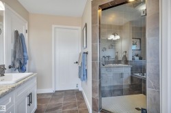 Discover this stunning 5-bedroom with large bonus and recreation rooms, 2649sf custom-built 2011 single detached home in peaceful Tribute, Leduc. Upgrades throughout: sleek granite countertops, rich hardwood flooring, luxurious tiled shower, big soaker tub, and bathroom with his and hers sinks in ensuite, and builder installed window protection package. Breathtaking lake views from kitchen, deck, patio, office & master bedroom and bathroom. 2-storey w/ full basement walkout, pond backing, 2-car attached garage, fully landscaped with maintenance-free front yard. Smoke and pet free house, original owner. Steps to walking paths & walking distance to Caledonia Park School, minutes from groceries, gas and multiple restaurants. All furniture negotiable with purchase. Perfect blend of elegance & convenience!