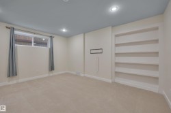 VA-VA-VA VOOM! Look at this big beauty! This 2,275 ft² 2-storey, AIR-CONDITIONED home has 4 bedrooms, 3.5 baths, HUGE bonus room, finished basement + double attached garage! Spacious living room has big sun-filled windows with GAS fireplace. The chef’s kitchen includes GORGEOUS black GRANITE countertops, beautiful dark cabinets, STAINLESS STEEL appliances, pantry + breakfast nook overlooking the WEST-FACING BACKYARD! Built-in speakers throughout! Upstairs you’ll find a HUUUGE bonus room, a dreamy primary bed with 5-pc ENSUITE including SOAKER TUB + WALK-IN CLOSET + 2 more beds and full bath. FULLY FINISHED BSMNT has a FAMILY/REC ROOM, 4th bed with 3-pc ensuite, and (shhhh …) a fun secret hidden space behind the bookshelf! Yard has LARGE DECK + GAS FIREPIT (no wood or mess)! Close to Father Leduc (K-8) school, Steps to parks, trails, pond, skating rink & minutes to Hwy 2A, QEII, EIA, Nisku, Costco, Outlet Mall, Amazon, and only 15 minutes to Edmonton! Incredible home, incredible location! So much to love!