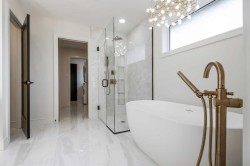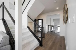 SHOW HOME FOR SALE! This award-winning show home in Southbrook, built by Stranville Living Master Builder, is finally ready to be sold and occupied by a lucky new homeowner. This Perth II model with walk-out basement has been recognized locally , provincially, and nationally for it's overall design, the executive kitchen, and the primary ensuite, making it one of the most popular builds every produced by Stranville Living. The pictures speak for themselves, but this home must be seen to be fully appreciated. The main floor is blessed with a gorgeous kitchen, accented by two-tone cabinetry, veined waterfall quartz island, and seamlessly integrated panel-ready appliances. Adjacent to the main kitchen is a private spice kitchen that includes a gas range and electric oven, hood fan, sink , and dishwasher. The striking main floor fireplace is a show-stopper that centers the family room and towers up the 18' ceilings in the open-to-below area with massive south-facing windows overlooking the pond at Discovery Park. Stairs with glass railing lead you to the upper level where you'll find the 170+ square foot primary bedroom that also enjoys views to the south. There are not many ensuite bathrooms that can rival this beauty, with features that include a custom shower with integrated tiled floor and walls, floating vanity in quarter-sawn oak with double sinks and floor lighting, deep soaker tub with floor-mounted fixtures, and a private water closet. Through the ensuite, you'll find the laundry room with a stacking washer/dryer set with sink and cabinet. Two more ample bedrooms, full bathroom, and generous media room wrap-up the upper level. The fully developed walkout basement adds two more bedrooms, full bathroom, and family room with a sliding patio door to the rear yard. If you're looking for 5-bedroom, fully developed, fully landscaped southside home with upgrades for days, you've come to the right house. There's nothing like NEW!