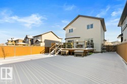MARVELOUS MORINVILLE! Move-in ready & meticulously maintained! The Kitchen features a PANTRY, STAINLESS STEEL APPLIANCES & GRANITE COUNTERS. Main floor offers up HARDWOOD FLOORS & a GAS FIREPLACE w/ upgraded mantle. Upstairs there are 3 ample sized Bedrooms including a large Primary Bedroom w/ Ensuite. Top-ranked trail system out your backyard! West facing Yard BACKS ONTO WALKING TRAILS & green space. BRIGHT & SUNNY HOME all year round. The Yard is fully fenced w/ a Composite Deck (w/ screw piles) & apple tree. HEATED, ATTACHED GARAGE (20'6" x 22'10") w/ Hot & Cold Water Taps, 220 Volt plug & EV Charger! Bonus: AIR CONDITIONING, MAIN FLOOR LAUNDRY & freshly painted main floor. Morinville offers urban amenities in a small town setting including a leisure centre, curling, hockey, skate park, splash park, farmers market & festivals. Only 20 mins. drive to CFB / Edmonton Garrison, 15 mins. to St. Albert (Costco, major shopping & restaurants) & 45 mins. to downtown.