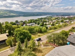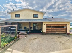 Stunning Home with Panoramic Views & Room to Grow! Perched high on a scenic hilltop, this full of character home offers breathtaking views over the town, rolling hills, and mighty Peace River. With timeless charm and generous living space, this 5-bedroom residence is perfect for families seeking comfort, style, and privacy. Step inside to discover a warm and inviting interior filled with natural light and rich character details. A spacious kitchen and dining room offer up the spectacular views that will never get old! Storage galore and with plenty of prep space, this heart of the home kitchen is sure to delight. Or enjoy the formal sitting room with fireplace or cozy family room-a great place for movie night and enjoying the twinkling lights of town. The upper level provides 4 of the 5 bedrooms which is a not too often found feature-4 bedrooms all on one level! The fully finished walk-out basement adds exceptional versatility—ideal for a home office, guest suite, or recreation area. There is bar area plus plenty of storage making this space easy to use and there is even a sauna offering you a relaxing escape to rest your tired body after a long day. Enjoy the convenience of a double attached garage, plus a separate single detached garage—perfect for extra storage, a workshop, or your weekend vehicle. Or use it like the current owners do and keep it for a home gym! Set on a spacious and private lot, the property is a peaceful retreat with lots of yard space and a fenced in garden plot allowing you to exercise your green thumb and grow your own produce. Don’t miss this rare opportunity to own a truly special home with unmatched views and endless potential.