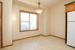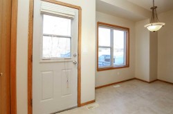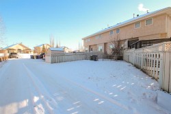 IMMEDIATE POSSESSION AVAILABLE ~ 3 BEDROOM, 2 BATH 2-STOREY TOWNHOME IN ANDERS SOUTH ~ LOCATED IN A KEY HOLE CLOSE WITH NO NEIGHBOURS BEHIND & TONS OF OFF STREET PARKING ~ A sun filled foyer welcomes you and opens to the spacious living room with 9' ceilings and a large south facing window that overlooks the front yard and allows natural light to fill the space ~ The kitchen offers a functional layout and features warm stained wood cabinets, ample counter space including an island with an eating bar, wall pantry, and opens to the dining room with more large windows that overlook the backyard ~ Rear entry just off the dining room has access to the rear deck and backyard ~ 2 piece main floor bathroom ~ The primary bedroom can easily accommodate a king size bed plus multiple pieces of furniture and features a walk in closet with dual doors and built in shelving ~ 4 piece bathroom has an oversized vanity, and a tile tub surround ~ The basement has laundry with built in cabinets, a storage area with built in shelving, bathroom plumbing roughed in, with tons of space for a family room and bedroom with future development ~ Central vacuum ~ The backyard is fully fenced, landscaped with mature trees and shrubs and backs on to a green space with mature trees ~ Huge rear parking with back alley access has a plug in and space for multiple vehicles/potential RV parking ~ Located in desirable Anders South with tons of walking trails, a lake, playgrounds, and shopping with easy access to schools and all other amenities.