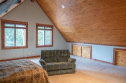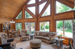 Welcome to your private lakefront retreat in beautiful Ponoka County. Nestled on a treed lot, this meticulously cared-for log-style home blends rustic charm with modern comforts, offering the perfect balance of relaxation and everyday living. Step inside to discover a bright and inviting living room with soaring ceilings and a striking stone fireplace that creates a warm and welcoming focal point. The spacious kitchen features rich dark wood cabinetry, a functional island, and plenty of counter and cupboard space, making it ideal for both family meals and entertaining. A dedicated laundry room with extra storage adds convenience to the main floor. A graceful spiral staircase leads upstairs, where you’ll find three comfortable bedrooms and a well-appointed 3-piece bathroom. The primary suite boasts a generous walk-in closet, while the additional bedrooms provide ample space for family or guests. Outside, the natural beauty of this property shines. Lush trees, vibrant flowers, and thoughtful landscaping create a serene setting, while the back deck offers the perfect spot to unwind and take in the the beauty of your natural surroundings while you relax in the 8-person hot tub. An electric gated entrance enhances privacy, and the attached double garage adds both function and security. Please note that this property comes with the John Deere tractor + snow blower attachment, two lawnmowers, the living room furniture, the patio furniture and all the televisions and shaw/rogers satellite! With its rustic elegance, stunning surroundings, and tranquil lakeside setting, this property offers an extraordinary opportunity to own your very own lake getaway in Ponoka County.