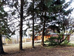 THIS SPACIOUS HOME HAS HAD NUMEROUS UPGRADES THROUGHOUT THE YEARS. This VERY UNIQUE HOME and outbuildings sit on 6.13 acres east of Bowden, just 15 minutes from both Innisfail and Olds. The spacious home offers a large kitchen with granite countertops, built-in oven, gas stove top, newer top line dishwasher, moveable island, and an adjoining sunroom with gas stove fireplace. There's a main floor laundry combined with a large pantry with lots of storage. The living room has a wood stove, and features a custom built wall unit. and has an adjoining wood room. There is a 3 piece bath with glass brick shower to complete the main floor. The second floor currently boasts 2 bedrooms, one large master that sits across the front of the home and includes the two turrets, and another bedroom that was once separated into two, and could be again. The second floor 3 piece bath has a clawfoot tub, large window and beautiful tile floor. The concrete walk-out basement is unfinished and could be used as another flex room or den. The basement utility room offers plenty of storage. The very large deck was built around a former above ground pool which has now been converted to a large outdoor entertainment area with a firepit.The landscaped yard is fully surrounded by trees and has a 24x35 foot shop/garage with brick floor and wood stove. It is plumbed for a gas heater as well. The very unique outbuildings include a church, a metal quonset that can hold 4 vehicles or more, an actual usable treehouse, AND possibly another cabin and a rough wood barn, if not removed before possession date. Plus assorted storage sheds.A few of these buildings are from the AMC series Wynonna Earp.The circular driveway makes access easy.