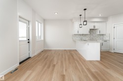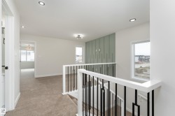 Experience modern living within this brand new 1587 sq ft duplex offering the perfect balance of style and comfort. The main floor boasts an open concept design with oversized windows that fill the home with natural light, a welcoming living room with fireplace, a sleek kitchen with abundant counter space, and a convenient 2pc bathroom. Upstairs you will find a versatile bonus room along with three spacious bedrooms including a primary retreat complete with a walk in closet and a 5pc ensuite, plus another full 4pc bathroom. The unfinished basement provides endless potential for future development while the double attached garage ensures convenience and storage. Step out onto your private deck and enjoy warm evenings in a vibrant community close to parks, trails, schools, and shopping. With brand new appliances, a separate entrance, and the pride of being the first to call it home, this property is ready to welcome you into the lifestyle you have been waiting for. Some photos are virtually staged.