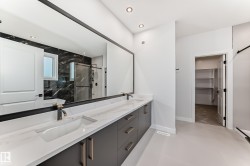 UPGRADED HOME BACKING GREENSPACE IN THE COMMUNITY OF MCLAUGHLIN! This home boasts 2557 sq/ft with 4 bedrooms, 3 full baths, bonus room & 9ft ceilings on all three levels. Main floor offers vinyl plank flooring, bedroom/den, family room with 18ft ceiling, fireplace. Kitchen, with modern high cabinetry, quartz countertops, island, & BUTLERS PANTRY/SPICE KITCHEN, is made for cooking family meals and entertaining. Spacious dinning area with ample sunlight is perfect for get togethers. The 3 piece bath finishes the main level. Walk up stairs to master bedroom with 5 piece ensuite & spacious walk in closet, 2 bedrooms with walk in closets, full bath, laundry and bonus room. Unfinished basement with separate entrance and roughed in bathroom is waiting for creative ideas. Public transit to Edmonton, & more than 40 km of trails, your dream home home awaits. Includes:DECK/TRIPLE PANE WINDOWS/ WIRELESS SPEAKERS/ GAS HOOKUP ON DECK