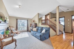Welcome to this beautifully maintained home, offering space, comfort, and a yard you’ll love to spend time in. The open main floor is bright and airy with vaulted ceilings, featuring a front living room with a cozy gas fireplace, seamlessly connected to the kitchen with an island and eating area. This level also includes two bedrooms and a 4-piece bath. The upper level is a private retreat, boasting a large primary bedroom with a walk-in closet and a 4-piece ensuite. The fully developed lower level adds even more living space with a spacious rec room, an additional bedroom, and another bathroom—perfect for family or guests. Recent upgrades provide peace of mind, including new siding, eaves, soffits, fascia, shingles, resurfaced deck with waterproof under-deck storage, and more. Step outside to your own backyard oasis filled with mature trees, apple trees, cherry trees, and Saskatoon bushes—an incredible setting for entertaining, relaxing, or enjoying nature right at home. This home combines thoughtful updates with a fantastic layout and an amazing outdoor space—truly a must-see!