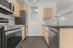Welcome to The Crossing — where style, comfort, and convenience meet. This beautifully updated, south-facing junior 1-bedroom walkout condo is the perfect opportunity for first-time buyers or savvy investors. Enjoy peace of mind with low strata fees and the flexibility of rental-friendly bylaws, all in a vibrant, central location. Step inside and be impressed by the fresh, modern finishes throughout: brand-new stainless steel appliances, sleek new laminate flooring, custom wood blinds, and freshly painted walls and ceilings. The open-concept layout is complete with granite countertops, bright cabinetry, and a stacked washer/dryer — offering the feel of a brand-new home. Bonus: 1 secured parking stall included. Walking distance to UFV, Hospital, Highway 1, many restaurants! Key location!