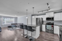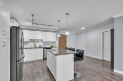 Beautifully maintained and updated 2 bed, 2 bath ground floor condo in West Abbotsford. Features an east-facing patio, open-concept kitchen with new cabinets, quartz counters, and stainless steel appliances. Bathrooms include cabinets, granite counters, and modern flooring. Enjoy in-suite laundry, ample storage, and 1 underground parking stall. Located close to shopping, schools, banks, recreation, and public transit. A move-in-ready home offering comfort, style, and convenience. Book your private showing today!