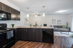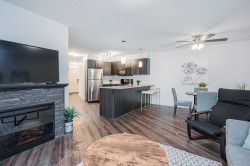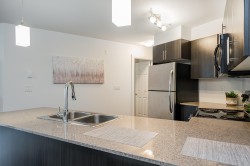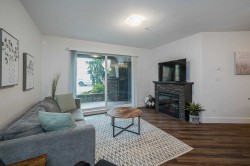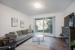 WOW! ABACUS UPTOWN! Great Central Abby location, Building & Unit! This 2-bdrm unit is grnd flr, walk out to covered patio, easy to load car, walk your pet. Quality finishing w quartz counter tops in kitchen and bthrm, breakfast bar, spacious open plan kitchen, dining area & lvng room, primary bedroom walk through closet, ensuite to bthrm, nice size second bdrm, durable flooring throughout, in-suite laundry. 2 PARKING, 1 LOCKER, pets allowed (1 dog or 2 cats-no size or breed restrctns), rentals allowed, strata gym space & meeting rm, a perfect unit & location if you are a first-time buyer, downsizing or looking for a great investment property! Close to transit, schools and a quick stroll to Historic Downtown Abbotsford amenities. Short Term Rentals Allowed! Have your realtor book a showing!